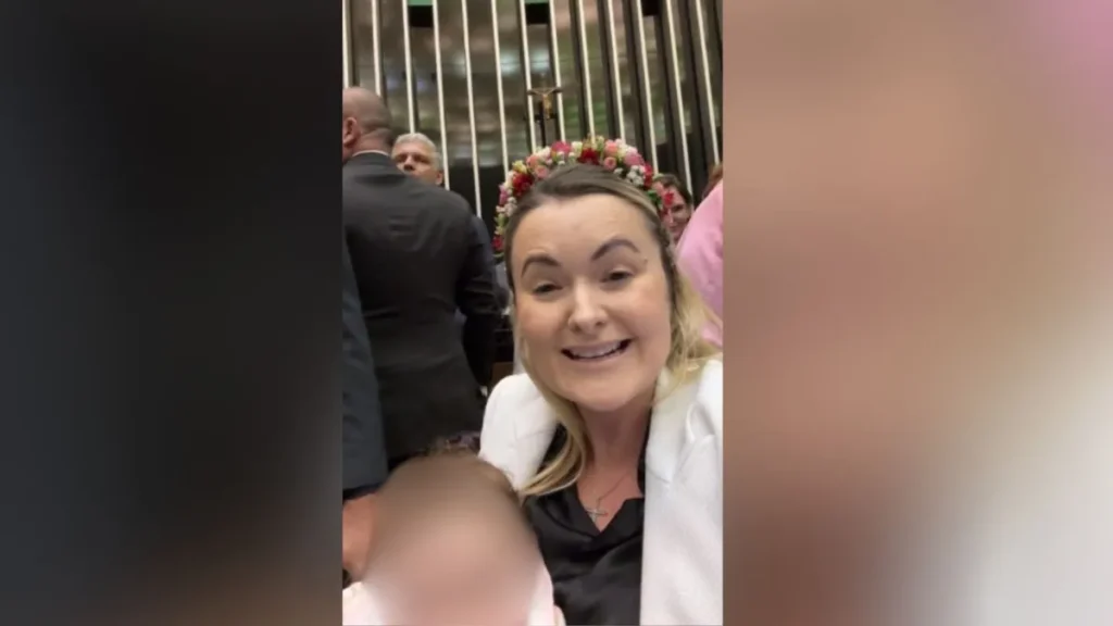 A deputada federal Júlia Zanatta (PL-SC) participou, nesta quarta-feira (6), da ocupação da mesa diretora da Câmara dos Deputados, durante protesto de parlamentares da oposição. Em uma cena inusitada, a parlamentar sentou-se na cadeira da presidência da Casa, normalmente ocupada por Hugo Motta (Republicanos-PB), enquanto segurava sua filha, uma bebê de quatro meses, no colo. Ninguém foi colocar polícia […]
